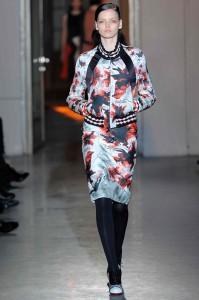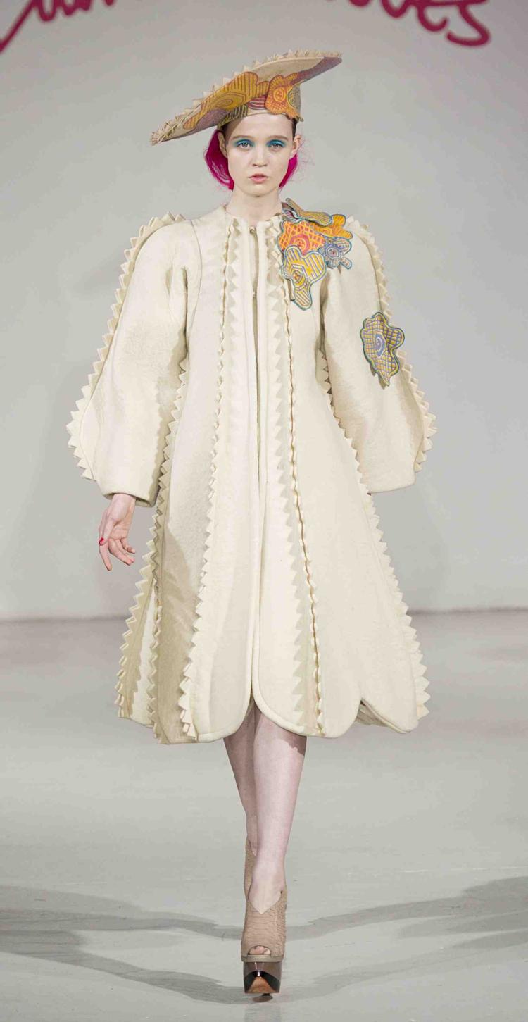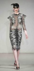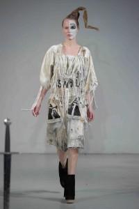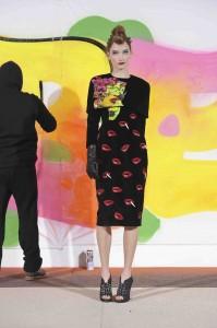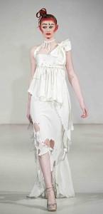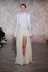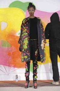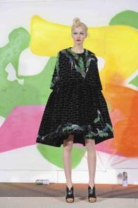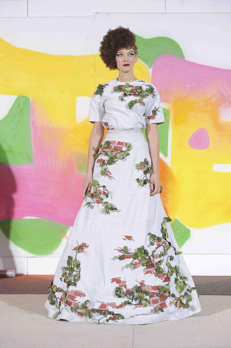 Ambiance Indian Graffiti avec l’arrivée d’artistes qui viennent tagger le mur pendant le défilé et énoncer à coups de bombes leur pacifique message : « Life is beautiful ». Manish Arora a su imposer à Paris sa vision d’une mode fantaisiste et colorée. Ses collections sont toujours un plaisir pour les yeux. Sa création repose sur la technologie tout en prônant la continuation de techniques artisanales comme les broderies de son pays. Une robe blanche se pare de fleurs et feuillages grimpant sur un décor de briques rouges.