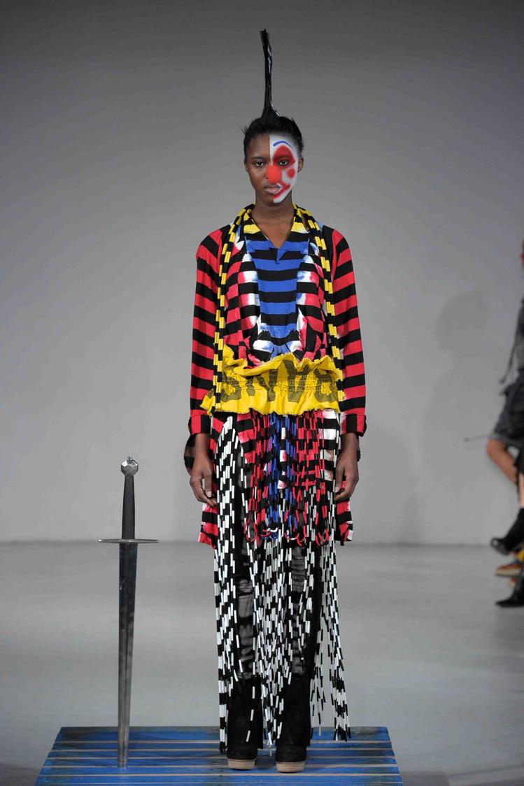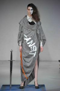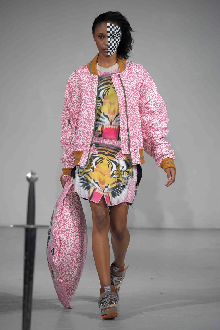 Des mélanges d’effets street style décontracté avec des formes de blousons, souvenirs de jogging. Une robe « serpillière » ? Sur les blousons rugissent des fauves. L’étoffe du diable façon zèbre revisite les rayures.