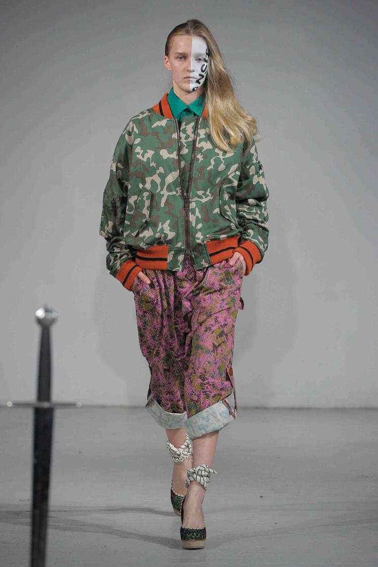 Fidèle à sa fantaisie naturelle, Bernhard Willhelm s’amuse, joue avec ses modèles. Son sens de l’humour le met sur la voie de la couleur, de la parodie, haute fantaisie. Du destroy avec des tissus effilochés, des franges, des graffitis, des jeux de pliages, des résilles.