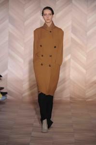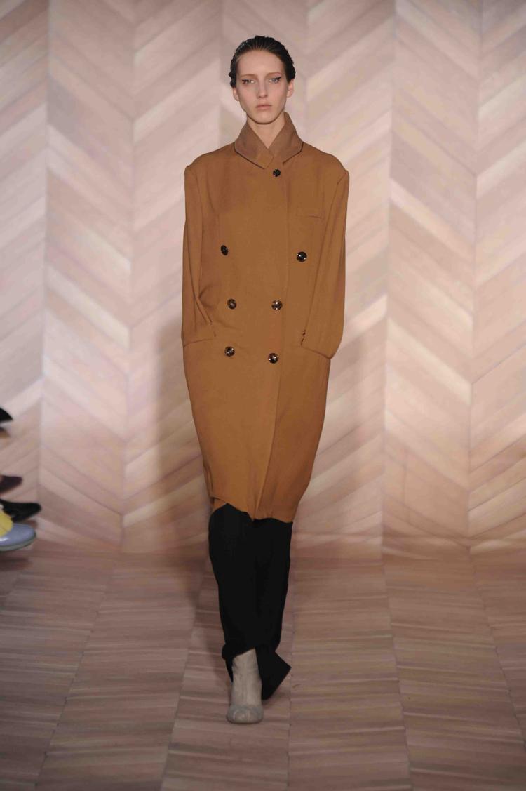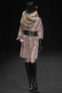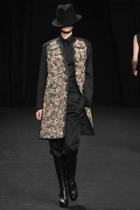 Si l’homme invisible n’est plus là, sa maison continue et a de quoi prolonger un répertoire qui fut riche et créatif. Le vêtement joue la déconstruction et la reconstruction. Cet hiver MMM s’est penchée sur une gestuelle : « porté sur les épaules », « mains dans les poches », « col relevé »…, autant d’attitudes qui se réinterprètent en vêtements. Les volumes se construisent, des effets de capes, des épaules bien marquées, des assemblages de panneaux, vêtements patchworks, des formes amples issues du kimono… Un jeu d’asymétrie avec des effets de longueurs différentes. En accessoire le gant de cuir. Des matières douces et confortables pour un hiver chic : laine, cachemire, cuir, velours,… Des satins brillants s’opposent à des tissus mats. Et une palette plutôt sobre, mais relevée de rouges. Un côté masculin-féminin. Très beaux manteaux pardessus avec manches cousues, comme en trompe l’oeil ou encore manteau à col démesuré, cheminée, en hauteur.