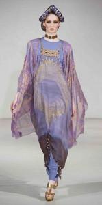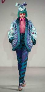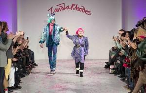 Hors calendrier, mais joyeux événement de la semaine parisienne, le défilé rétrospective de Zandra Rhodes orchestré par On/Off fut très réussi. Célèbre Outre-Manche, Zandra Rhodes a débuté sa carrière en 1969 et a accompagné avec éclat les années hippies d’imprimés inventifs, de couleurs vives, de formes caftans et d’une haute fantaisie. Tout un folklore de robes à effets de voiles entraîne vers l’Orient, mais la créatrice eut aussi une période punk en utilisant les épingles à nourrice.