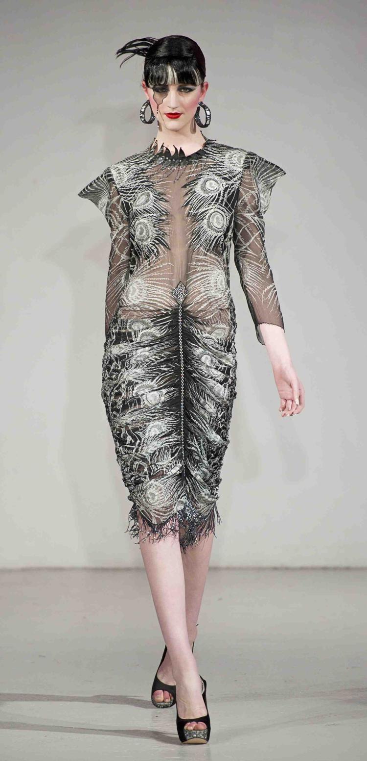 Des robes de soie aux imprimés originaux, un motif « Sparkle », des fleurs pop, un motif sinisant, des plumes de paon, une robe créée pour la princesse Diana en 1985…