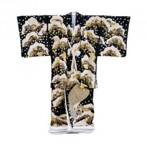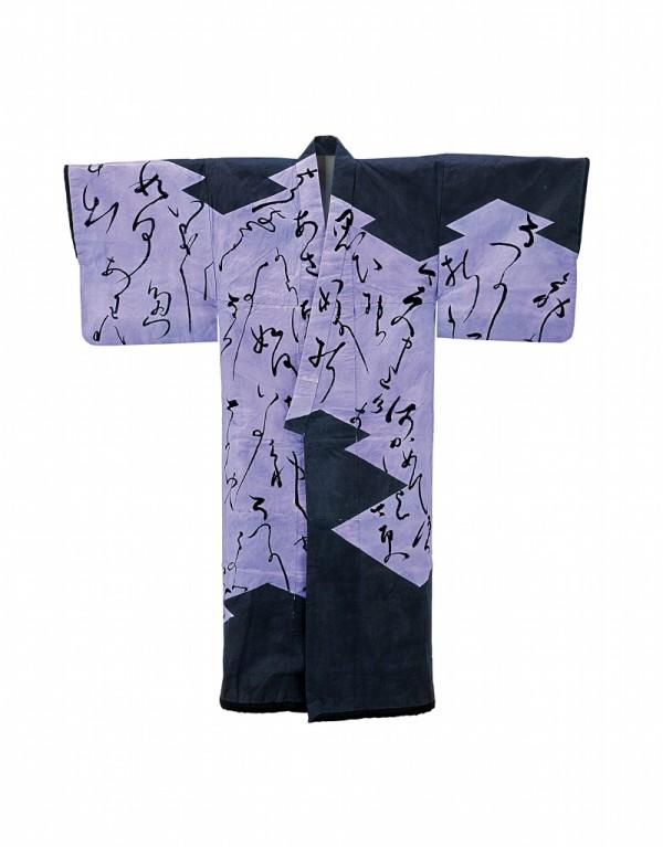 A l’origine vêtement de papier, Kamiko symbolise l’état de pauvreté qui a touché le héros dont le vêtement est constitué de lettres d’amour calligraphiées (en bandes de washi). Aujourd’hui le motif de fragments calligraphiés est repris, mais le modèle est réalisé sur de la soie. Modèle des années 80.