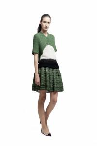 Alice Lemoîne a réussi à inscrire le « tricot » au coeur des collections parisiennes de prêt-à-porter. Si sa maille peut jouer par certains côtés l’artisanal, elle explore de plus en plus les possibilités de la technologie choisissant des fils techniques et les mélangeant. Pour le printemps-été, elle a choisi l’hybridation de deux techniques, mêlant le côté manuel à un travail de coupe, de patronage, de construction.