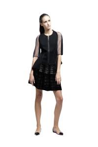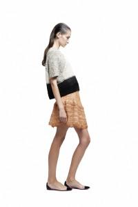 Quelques formes amples, presque oversized. Imprimés géométriques presque origami ou organisation « chimique ». Une collection noir et blanc égayée d’une palette sourde de jaune moutarde, gris et rose pastel.